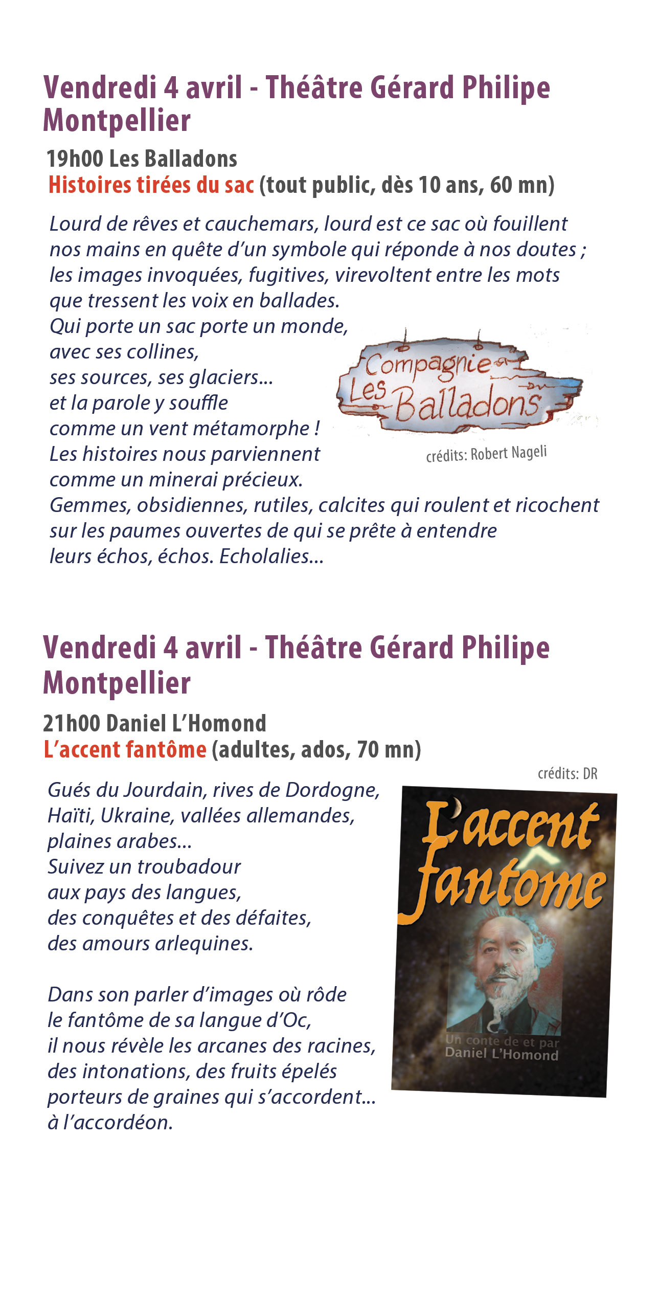 Créé par la Compagnie les Balladons en 2014 sous l'impulsion de Robin Recours, qui en est toujours le directeur artistique, ce festival dédié au arts de la Parole était au départ un partenariat d'une semaine avec le théâtre Gérard Philippe. Il s'étend à présent sur 2 semaines et demi, dans 4 théâtres et médiathèques et comprend plus d'une vingtaine de spectacles, stages de formation, conférences, balades contées.